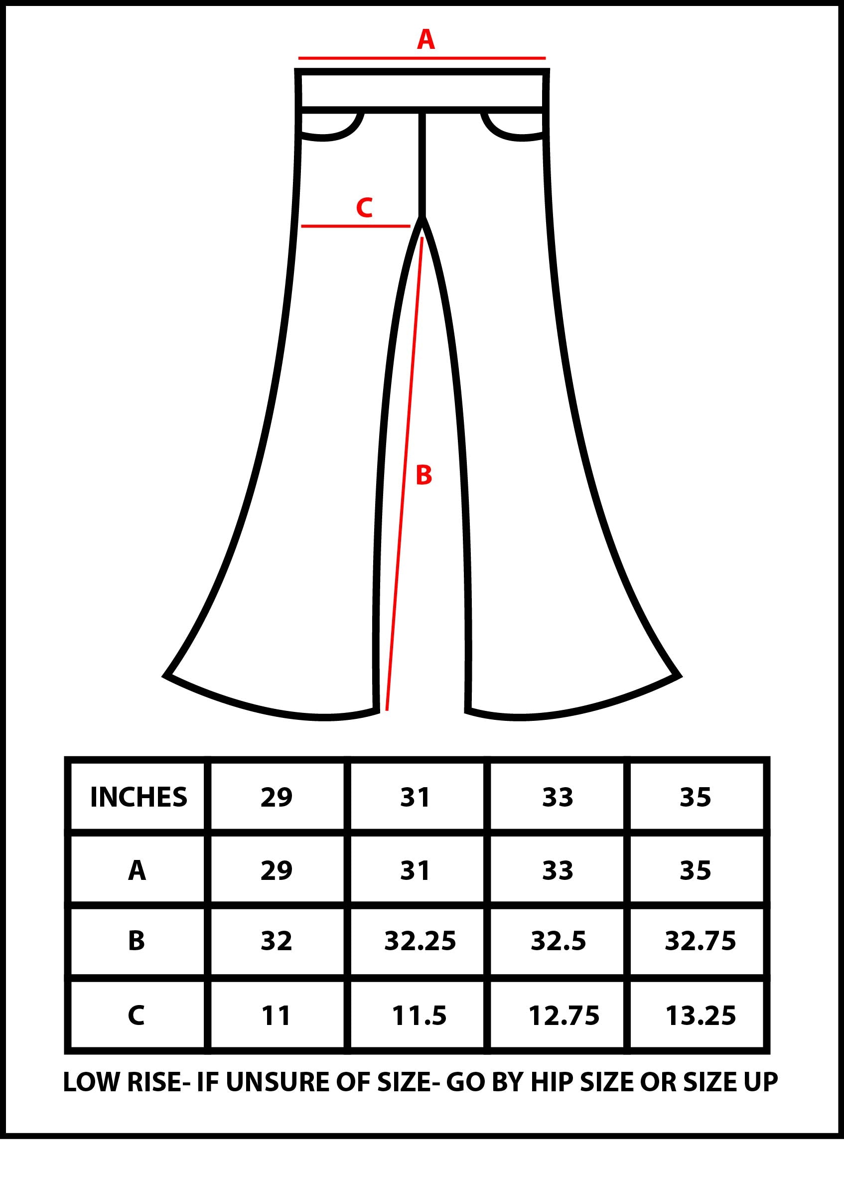 These jeans are LOW-RISE, if unsure of size; SIZE UP or select approximate HIP SIZE